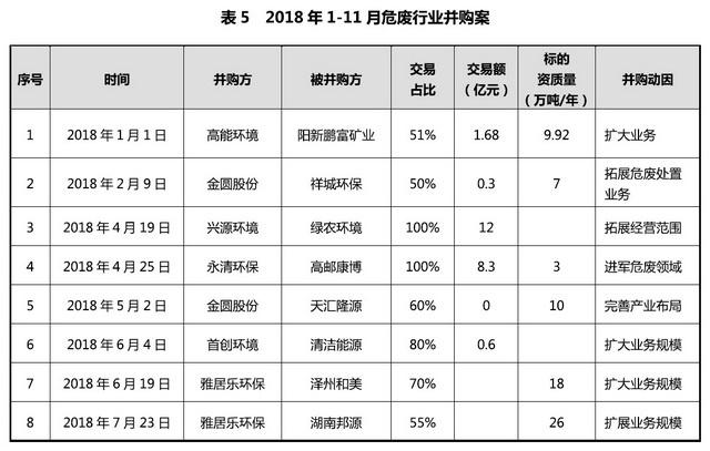 高門檻、高利潤、嚴監(jiān)管、大缺口”的危廢處理行業(yè)正在成為各路資本追逐的“香餑餑”。不完全統(tǒng)計結果顯示,僅2018年全國危廢行業(yè)兼并購數量就超過10起,資本的介入也加快了行業(yè)整合。