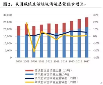 根據(jù)國家統(tǒng)計(jì)局,2017年我國城鎮(zhèn)生活垃圾清運(yùn)總量達(dá)2.83億噸,無害化處置2.72億噸,其中焚燒處置0.93億噸,焚燒占無害化處置量比例34.3%。