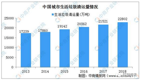 龐大的生活垃圾量為清運也帶來增長。近年來,國家相關(guān)部門及各城市紛紛加大治理力度,加強(qiáng)對生活垃圾的清運力度。2018年全國城市生活垃圾清運量22802萬噸,同比增長6%。