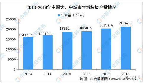 隨著我國城市化進(jìn)程步伐的加快,垃圾焚燒處理需求持續(xù)旺盛。我國是人口大國,也是垃圾產(chǎn)生大國,且隨著經(jīng)濟(jì)穩(wěn)步發(fā)展、民眾生活消費水平、城鎮(zhèn)化率不斷提高,生活垃圾產(chǎn)生量持續(xù)走高,2018年,全國200個大、中城市生活垃圾產(chǎn)生量21147.3萬噸。