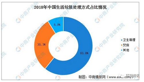 我國生活垃圾無害化處理的方式主要有三種:衛(wèi)生填埋、焚燒和其他,目前仍以衛(wèi)生填埋為主。據(jù)住建部發(fā)布的《2018中國城市建設(shè)統(tǒng)計年鑒》,2018年生活垃圾衛(wèi)生填埋663萬噸,占據(jù)了我國生活垃圾處理的60.8%;其次是生活垃圾焚燒處理331萬噸,占30.3%。