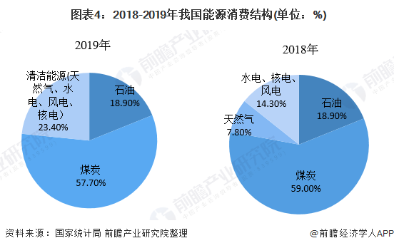 根據(jù)國(guó)家統(tǒng)計(jì)局?jǐn)?shù)據(jù)顯示,2018年我國(guó)煤炭消費(fèi)量占能源消費(fèi)總量的59.00%;其次是石油,占比為18.90%;水電、核電及風(fēng)電的消費(fèi)量占比為14.30%,清潔能源的消費(fèi)占比達(dá)到22.1%。2019年清潔能源消費(fèi)量占比23.40%,可見(jiàn)清潔能源的消費(fèi)占比實(shí)現(xiàn)大幅提高。
