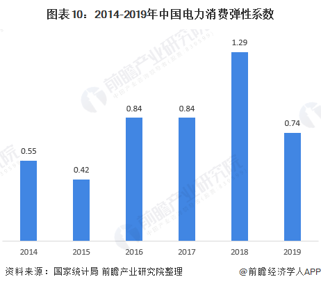 同理,電力消費(fèi)彈性系數(shù)近年來(lái)也有所下降,2019年,電力消費(fèi)彈性系數(shù)降為0.74,說(shuō)明我國(guó)電力消費(fèi)的增速也低于了我國(guó)國(guó)民經(jīng)濟(jì)的增長(zhǎng)速度,我國(guó)能源的利用效率可見(jiàn)一斑。