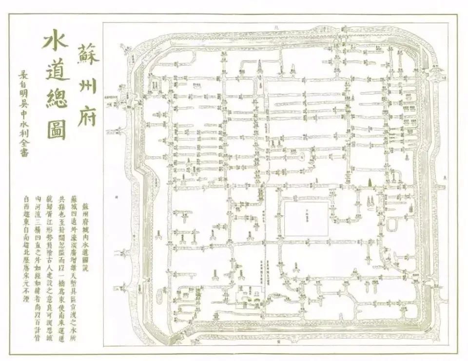 借助完備的城市水網(wǎng)體系,再加上向外伸出的胥江、上塘河、元和塘、至和塘、等河道與護城河連結,并對外溝通向城鄉(xiāng),共同構成了城內、城外有機結合的水網(wǎng)體系。