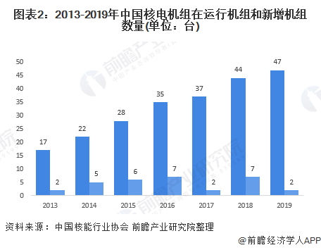 截至2019年,中國運(yùn)行核電機(jī)組共47臺(tái)(不含臺(tái)灣地區(qū)),裝機(jī)容量為48751.16MWe(額定裝機(jī)容量),2019年1-12月全國共有2臺(tái)核電機(jī)組完成首次裝料和并網(wǎng)運(yùn)行。
