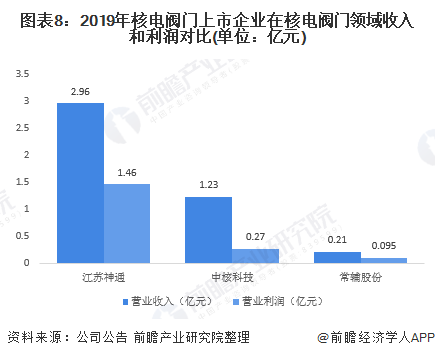 從上市的核電閥門企業(yè)分析,2019年江蘇神通在核電閥門產(chǎn)品中實(shí)現(xiàn)營業(yè)收入2.96億元,營業(yè)利潤1.46億元,相較于中核科技和常輔股份而言擁有較大的銷售競爭力。