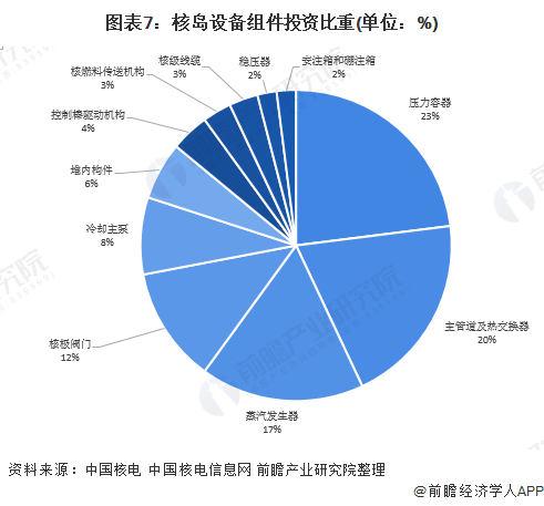 據(jù)中國核電和中國核電信息網(wǎng)的披露,一般而言,核島設(shè)備中,壓力容器、主管道及熱交換器、蒸汽發(fā)生器都是投資的重點(diǎn),其中壓力容器占比為23%,主管道及熱交換器占比為20%,蒸汽發(fā)生器占比為17%,核電閥門占比大概為12%。