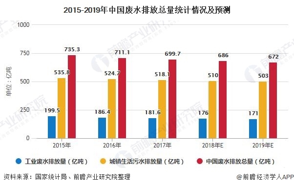 這項(xiàng)政策實(shí)施后,廢止了排污費(fèi)征收,對(duì)保護(hù)和改善環(huán)境,減少污染物排放,推進(jìn)生態(tài)文明建設(shè)具有重要的意義。前瞻初步估算2018年和2019年我國(guó)的廢水排放量仍然呈現(xiàn)下降的趨勢(shì),預(yù)計(jì)到2019年我國(guó)廢水排放量下降至670億噸左右。