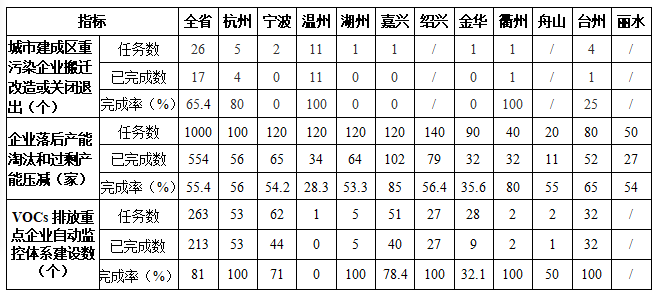 截至6月底,全省已完成17個城市建成區(qū)重污染企業(yè)搬遷改造或關(guān)閉退出,完成率為65.4%;全省已完成554家落后產(chǎn)能淘汰和過剩產(chǎn)能壓減,完成率為55.4%;全省已完成213個VOCs排放重點企業(yè)自動監(jiān)控體系建設(shè),完成率為81%。