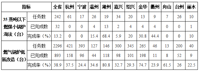 截至6月底,全省已完成32臺35蒸噸以下燃煤小鍋爐淘汰,完成率為13.2%;全省已完成893臺燃氣鍋爐低氮改造,完成率為38.9%。