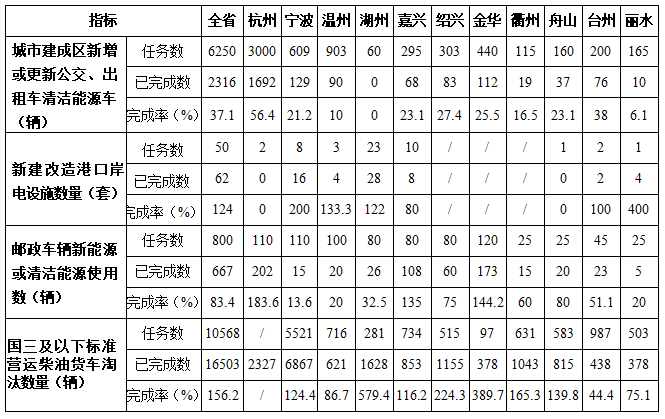 截至6月底,全省建成區(qū)新增或更新公交、出租車清潔能源車2316輛,完成率為37.1%;全省已完成62套新建改造港口岸電設(shè)施,已提前完成全省年度任務(wù);全省已完成667輛郵政車輛新能源或清潔能源使用,完成率為83.4%;全省已完成16503輛國三及以下標(biāo)準(zhǔn)營運柴油貨車淘汰,已提前完成全省年度任務(wù)。