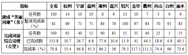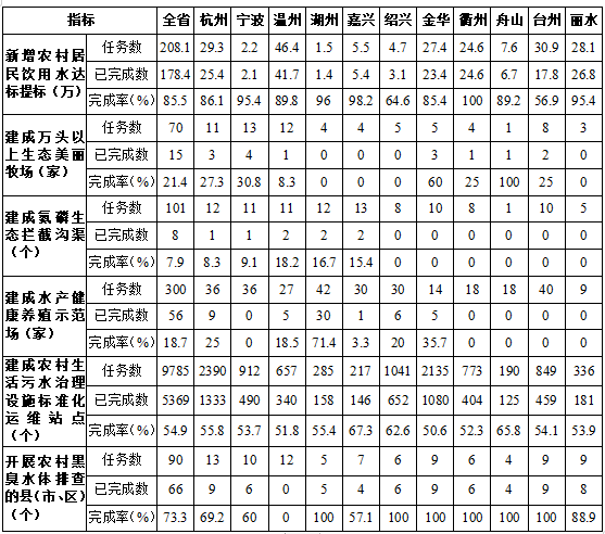 “五水共治”碧水行動重點工作績效目標(biāo)進展情況