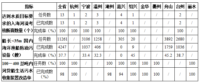 2020年全省計劃要求13個入海河流考核斷面達到水質(zhì)目標(biāo),安裝11261艘船長<35m國內(nèi)海洋漁船防油污設(shè)備,完成100個100—400總噸內(nèi)河貨船生活污水收集裝置改造。