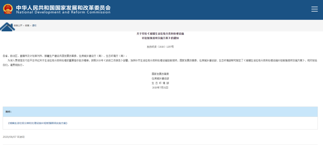 重磅 | 國家發(fā)改委《城鎮(zhèn)生活垃圾分類和處理設(shè)施補(bǔ)短板強(qiáng)弱項(xiàng)實(shí)施方案》(附全文)