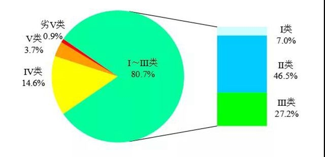 圖2 2020年1-7月全國(guó)地表水水質(zhì)類別比例