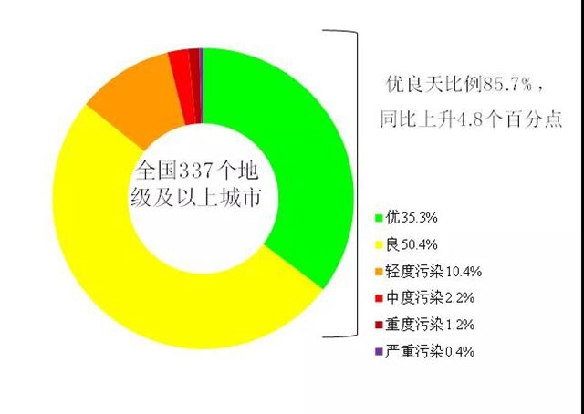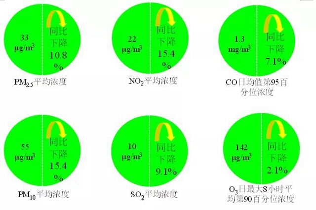1-7月,全國(guó)337個(gè)地級(jí)及以上城市平均優(yōu)良天數(shù)比例為85.7%,同比上升4.8個(gè)百分點(diǎn);PM2.5濃度為33微克/立方米,同比下降10.8%;PM10濃度為55微克/立方米,同比下降15.4%;O3濃度為142微克/立方米,同比下降2.1%;SO2濃度為10微克/立方米,同比下降9.1%;NO2濃度為22微克/立方米,同比下降15.4%;CO濃度為1.3毫克/立方米,同比下降7.1%。