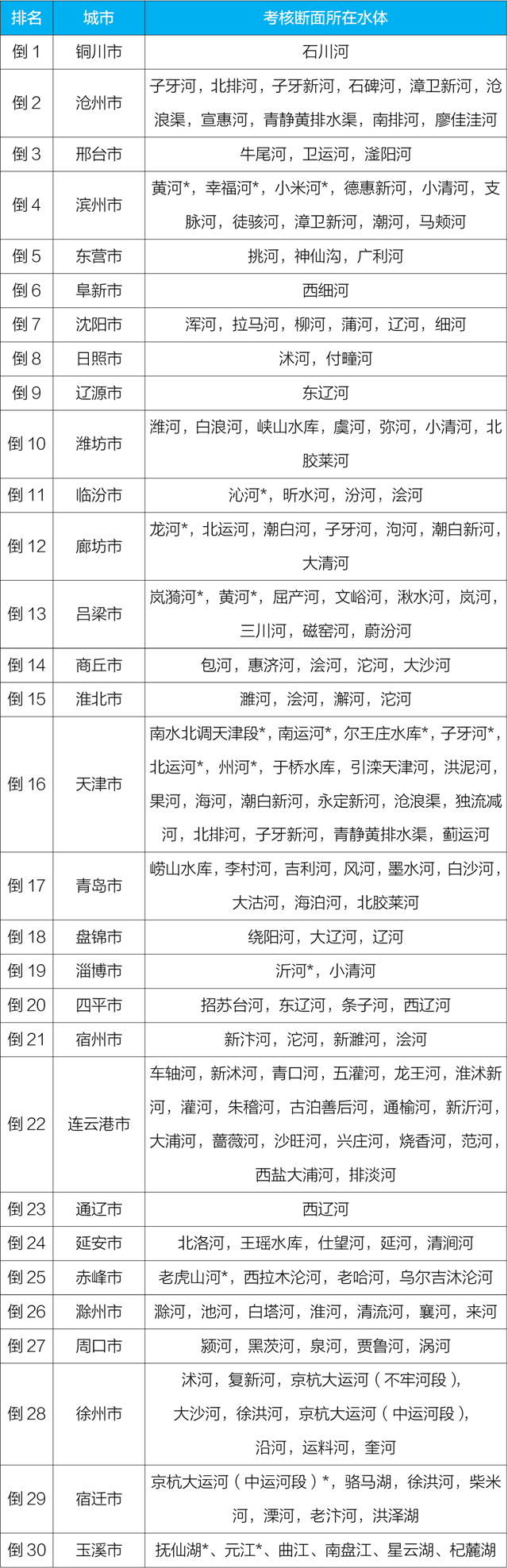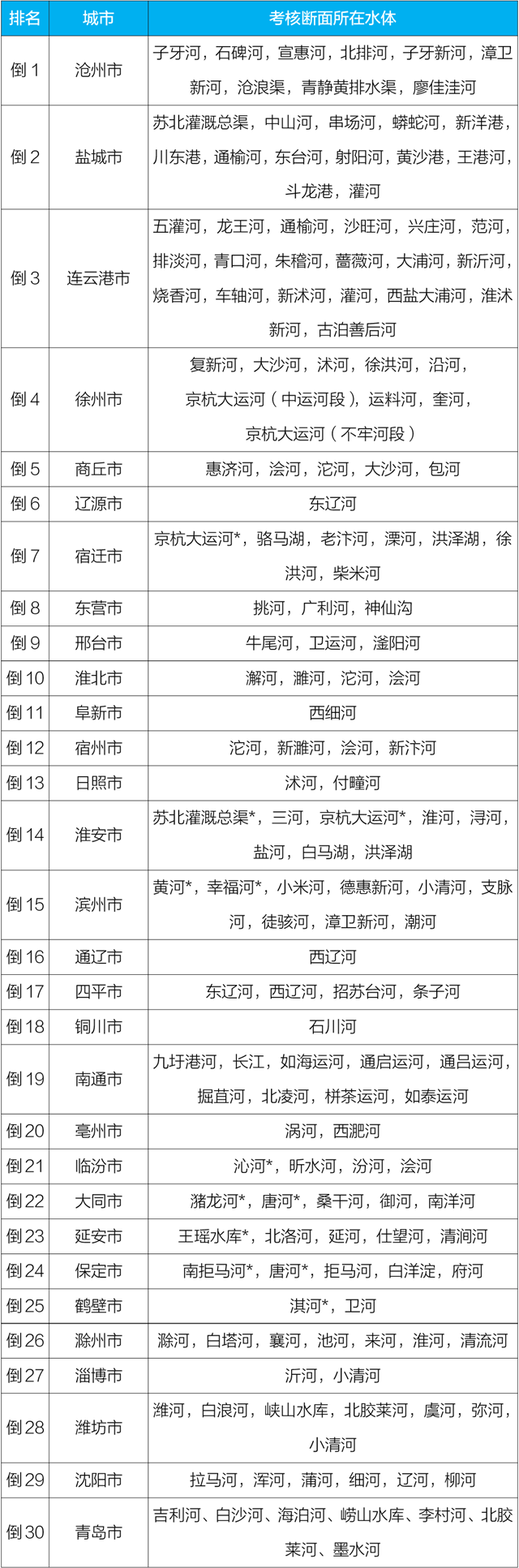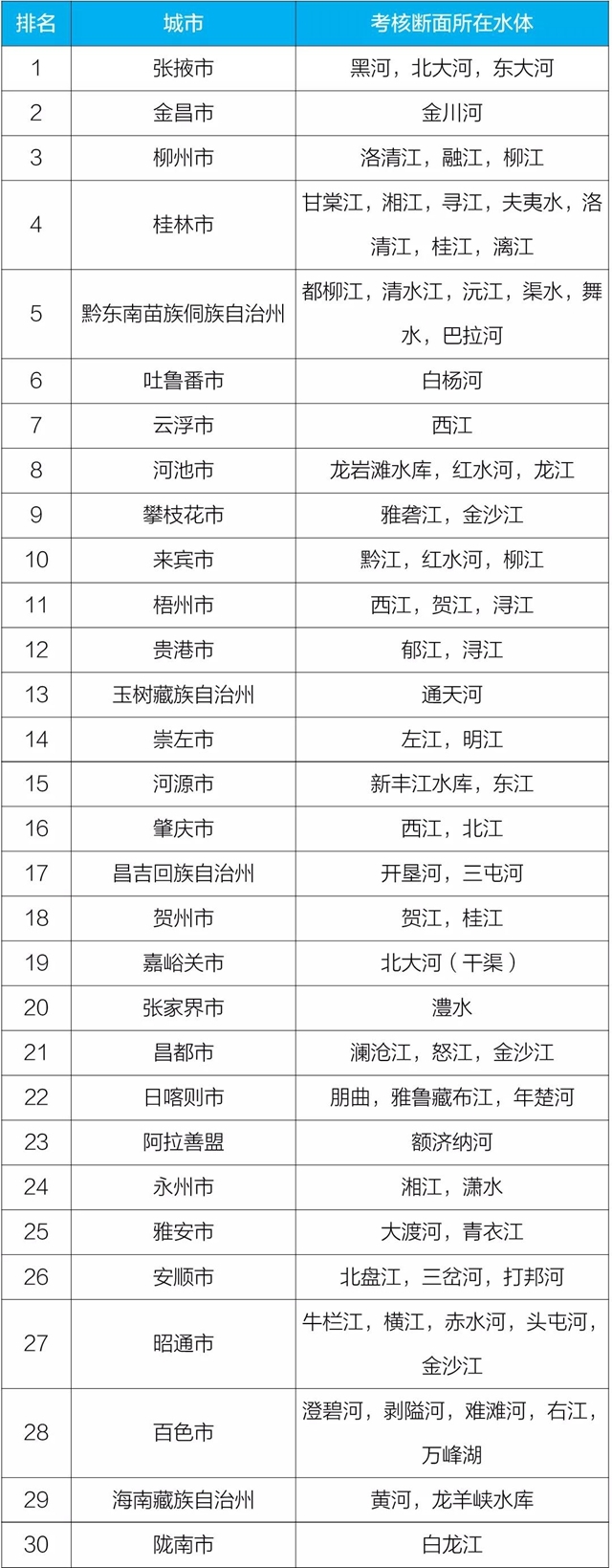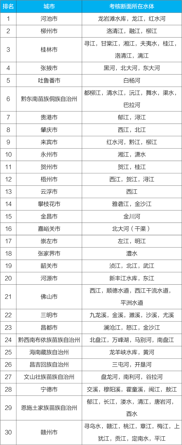 地級(jí)及以上城市國(guó)家地表水考核斷面排名