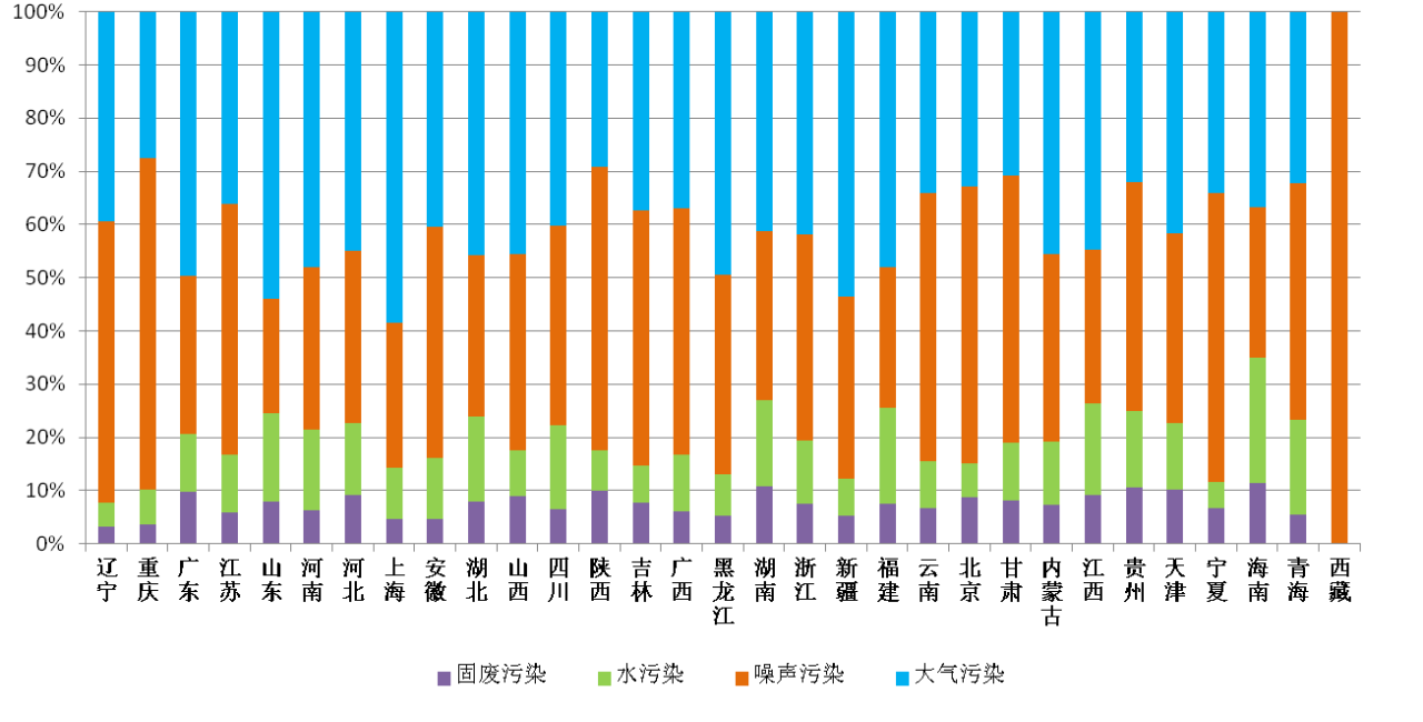 (注:一件舉報(bào)中可能同時(shí)涉及多種問題,因此各污染類型之和≥100%。)