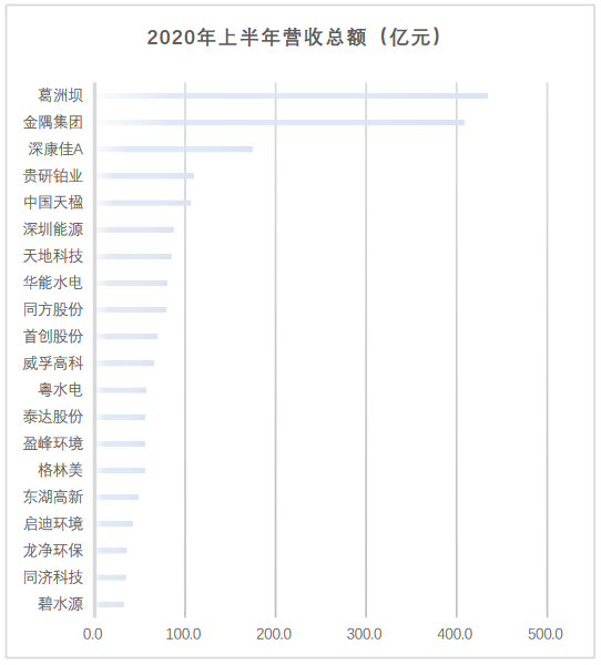 2020年上半年環(huán)境修復A股環(huán)保上市公司環(huán)保營收排名