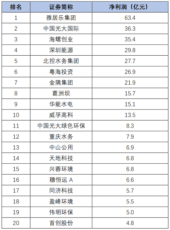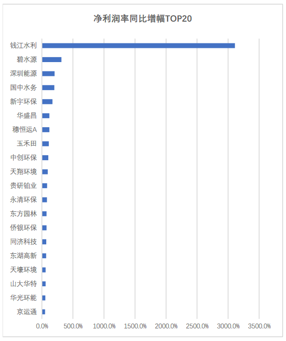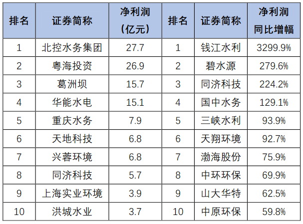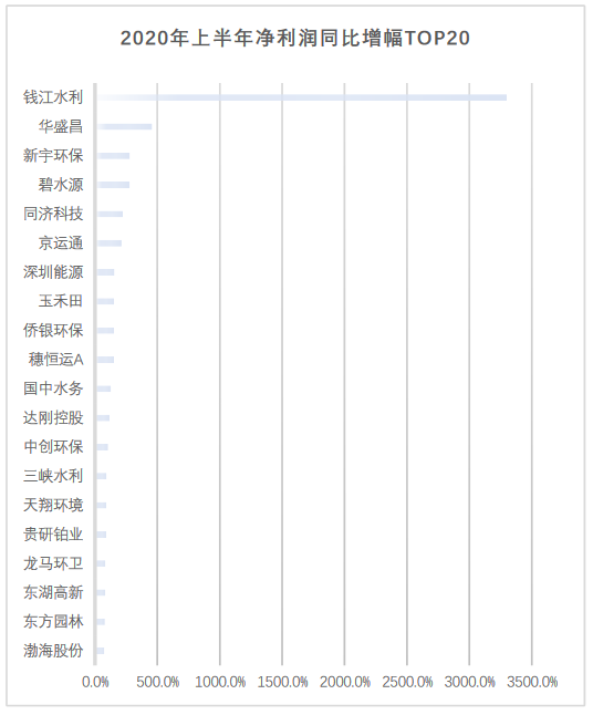 2020年上半年水務(A股+港股)環(huán)保上市公司凈利潤及其同比增幅TOP10