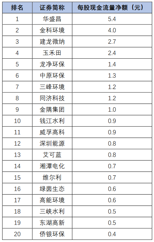 注:1家A股環(huán)保上市公司因每股現金流量凈額、資產負債率的部分數據未披露,故未進行這2個指標的年度同期比較。2020年上半年固廢處理與資源化A股環(huán)保上市公司環(huán)保營收TOP10
