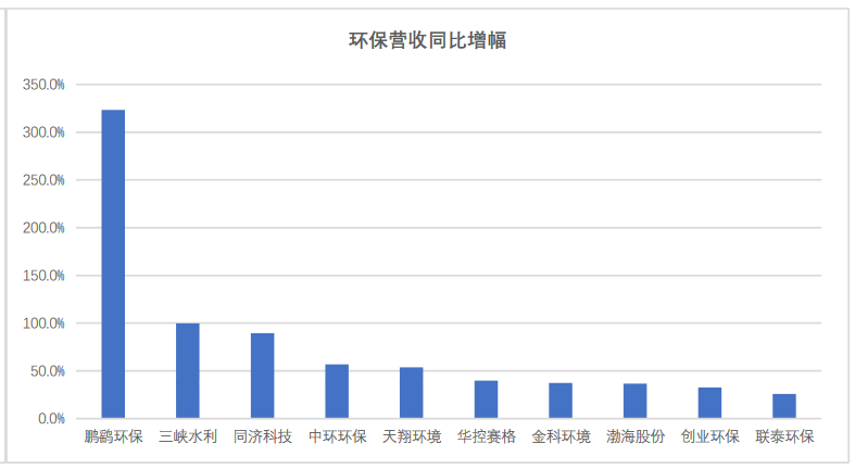 2020年上半年大氣污染防治A股環(huán)保上市公司環(huán)保營收同比增幅TOP10