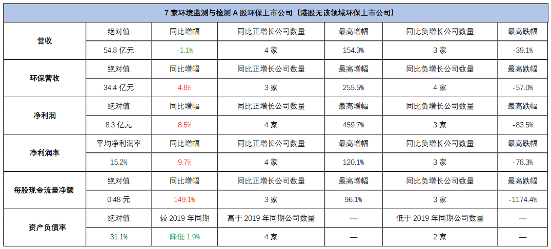 2020年上半年環(huán)境監(jiān)測與檢測A股環(huán)保上市公司環(huán)保營收同比增幅排名