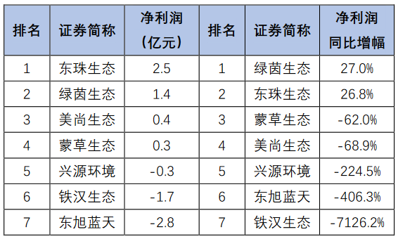 2020年上半年環(huán)境修復A股環(huán)保上市公司凈利潤及其同比增幅排名