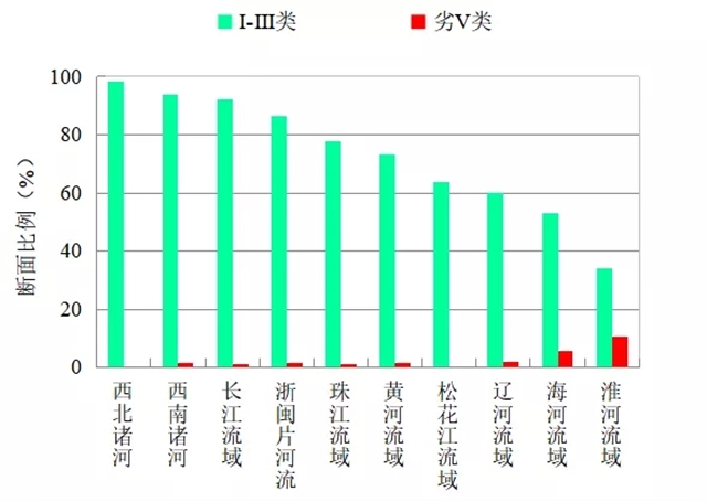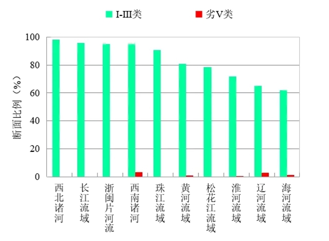 2020年1-8月,長江、黃河、珠江、松花江、淮河、海河、遼河等七大流域及西北諸河、西南諸河和浙閩片河流Ⅰ-Ⅲ類水質(zhì)斷面比例為84.9%,同比上升6.7個百分點(diǎn);劣Ⅴ類為0.6%,同比下降3.6個百分點(diǎn)。主要污染指標(biāo)為化學(xué)需氧量、高錳酸鹽指數(shù)和五日生化需氧量。其中,西北諸河、長江流域、浙閩片河流、西南諸河和珠江流域水質(zhì)為優(yōu),黃河和松花江流域水質(zhì)良好,淮河、遼河和海河流域?yàn)檩p度污染。