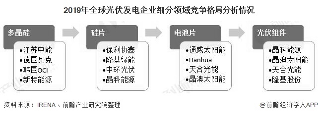 分細(xì)分領(lǐng)域來看,在多晶硅領(lǐng)域江蘇中能、德國瓦克、韓國OCI和新特能源是該領(lǐng)域的代表性企業(yè);硅片領(lǐng)域中保利協(xié)鑫、隆基綠能、中環(huán)光伏和晶科能源位于行業(yè)前列;電池片領(lǐng)域中通威太陽能、Hanhua、天合光能和晶澳太陽能處于行業(yè)領(lǐng)先;在光伏組件領(lǐng)域,晶科能源、晶澳太陽能、天合光能以及隆基股份競(jìng)爭(zhēng)力較強(qiáng)。