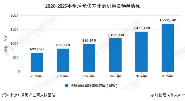 原標(biāo)題:2020年全球光伏發(fā)電行業(yè)市場(chǎng)現(xiàn)狀及發(fā)展前景分析 2025年累計(jì)裝機(jī)容量有望超1700GW