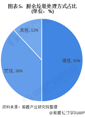 當(dāng)前中國廚余垃圾處理中,約50%的部分依靠填埋處理,約38%的部分通過焚燒處理,其余部分通過高溫堆肥、微生物處理或厭氧消化等方式。
