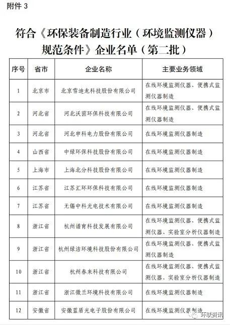 3.符合《環(huán)保裝備制造行業(yè)(環(huán)境監(jiān)測儀器)規(guī)范條件》企業(yè)名單(第二批)