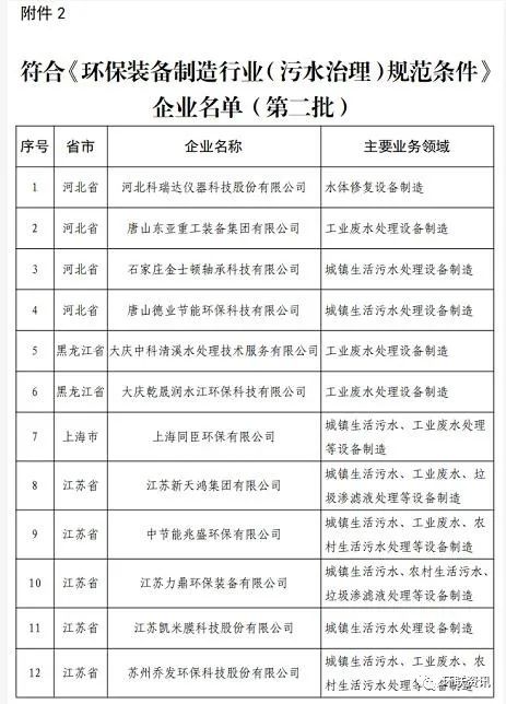 2.符合《環(huán)保裝備制造行業(yè)(污水治理)規(guī)范條件》企業(yè)名單(第二批)