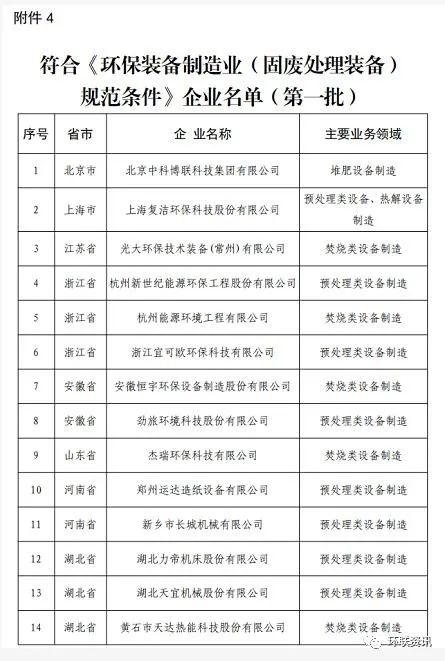 4.符合《環(huán)保裝備制造業(yè)(固廢處理裝備)規(guī)范條件》企業(yè)名單(第一批)