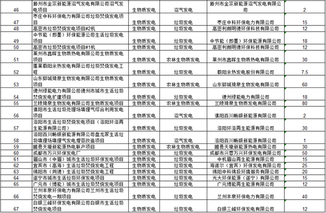 2020年9月30日,國家電網(wǎng)有限公司已將完成公示的第四批次可再生能源發(fā)電項(xiàng)目補(bǔ)貼項(xiàng)目清單上報(bào)國家主管部門,本次公布的2020年第四批可再生能源發(fā)電補(bǔ)貼項(xiàng)目清單中,生物質(zhì)發(fā)電項(xiàng)目總計(jì)67個(gè),其中垃圾焚燒發(fā)電項(xiàng)目44個(gè),沼氣發(fā)電項(xiàng)目5個(gè),農(nóng)林生物質(zhì)發(fā)電項(xiàng)目18個(gè),清單如下: