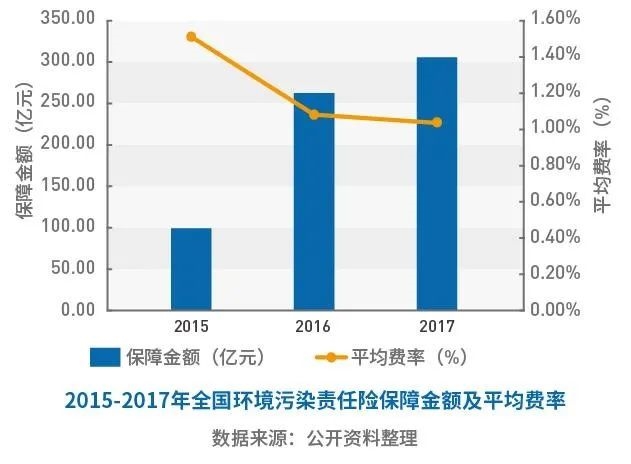 《報告》研究發(fā)現(xiàn),2015年至2017年間,中國環(huán)責(zé)險投保企業(yè)數(shù)量不斷增加,保費收入不斷增長,保險費率有所下降。然而,從全國范圍看,投保企業(yè)的數(shù)量占規(guī)模以上工業(yè)企業(yè)的比例仍不足5%,環(huán)責(zé)險保費收入占責(zé)任險保費收入仍不足1%,保險費率仍高于一般責(zé)任險的平均保險費率,投保規(guī)模有待提高,產(chǎn)品性價比有待進一步優(yōu)化。