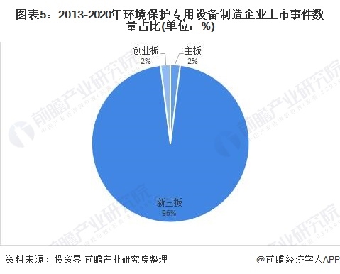 從環(huán)境保護(hù)專用設(shè)備制造行業(yè)企業(yè)上市分布來看,近幾年主要集中在新三板上市;因目前我國環(huán)境保護(hù)專用設(shè)備行業(yè)中企業(yè)實(shí)力總體偏弱,相對于其他上市板塊來說,新三板上市門檻較低,因此成為大部分環(huán)境保護(hù)專用設(shè)備制造行業(yè)企業(yè)上市的首選。