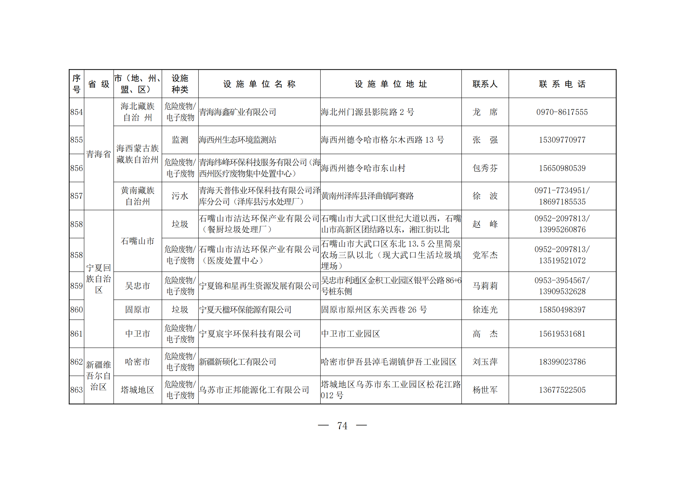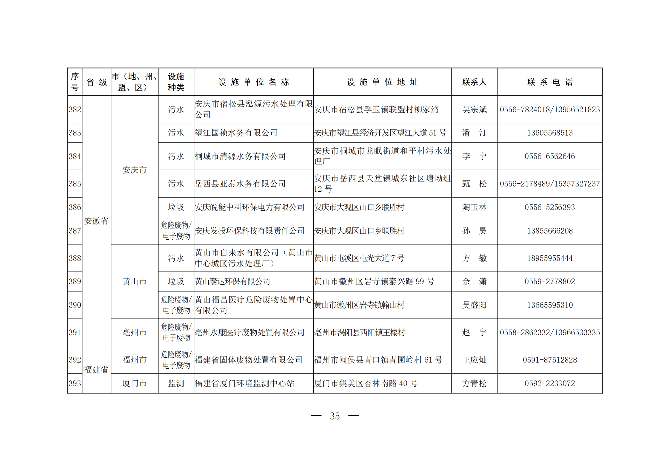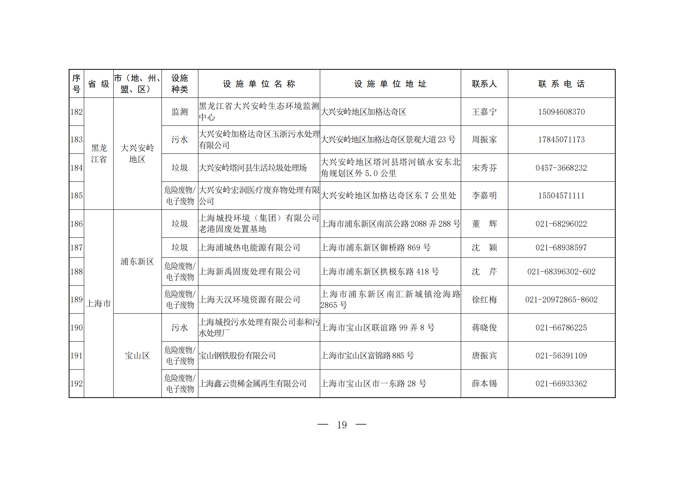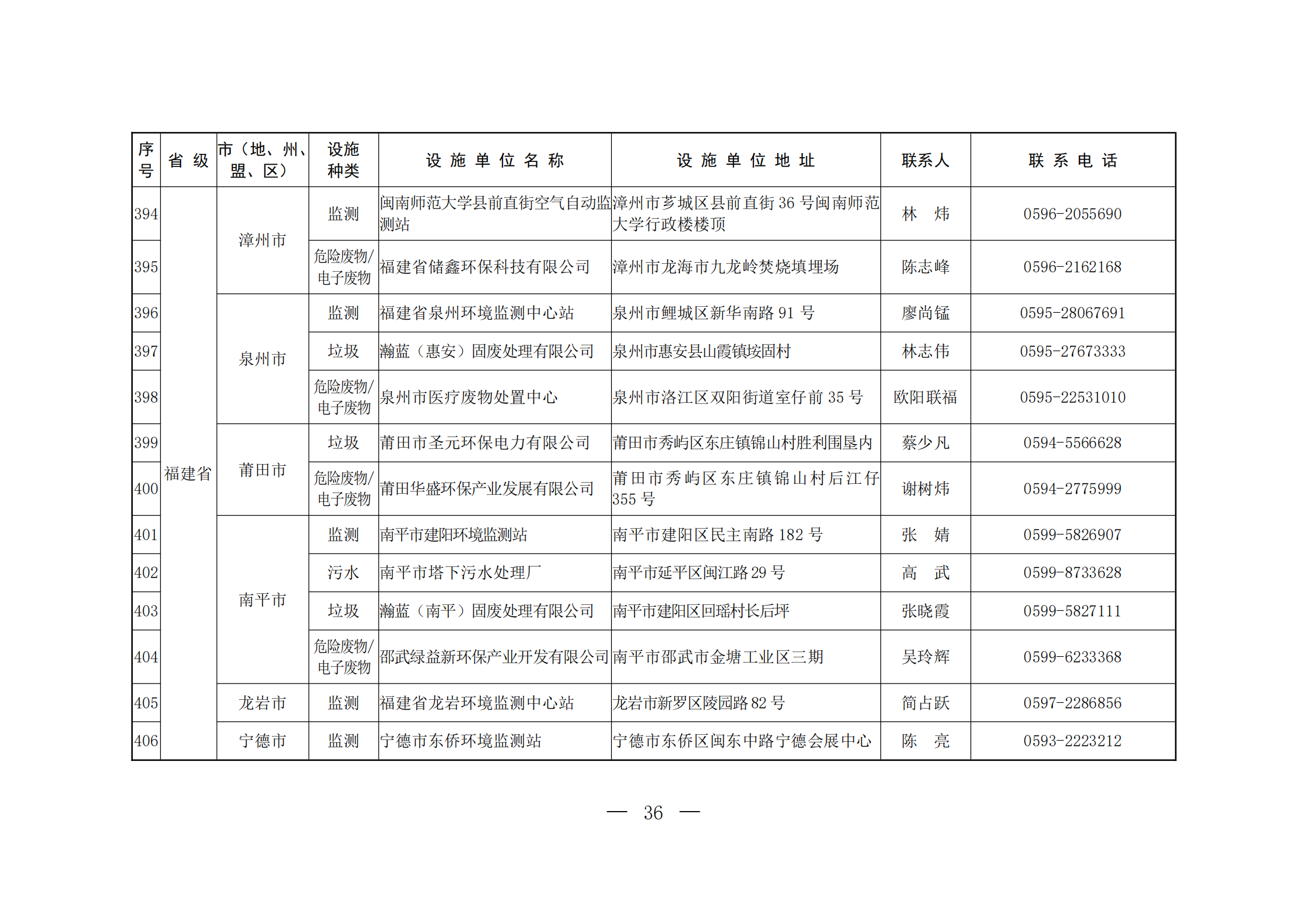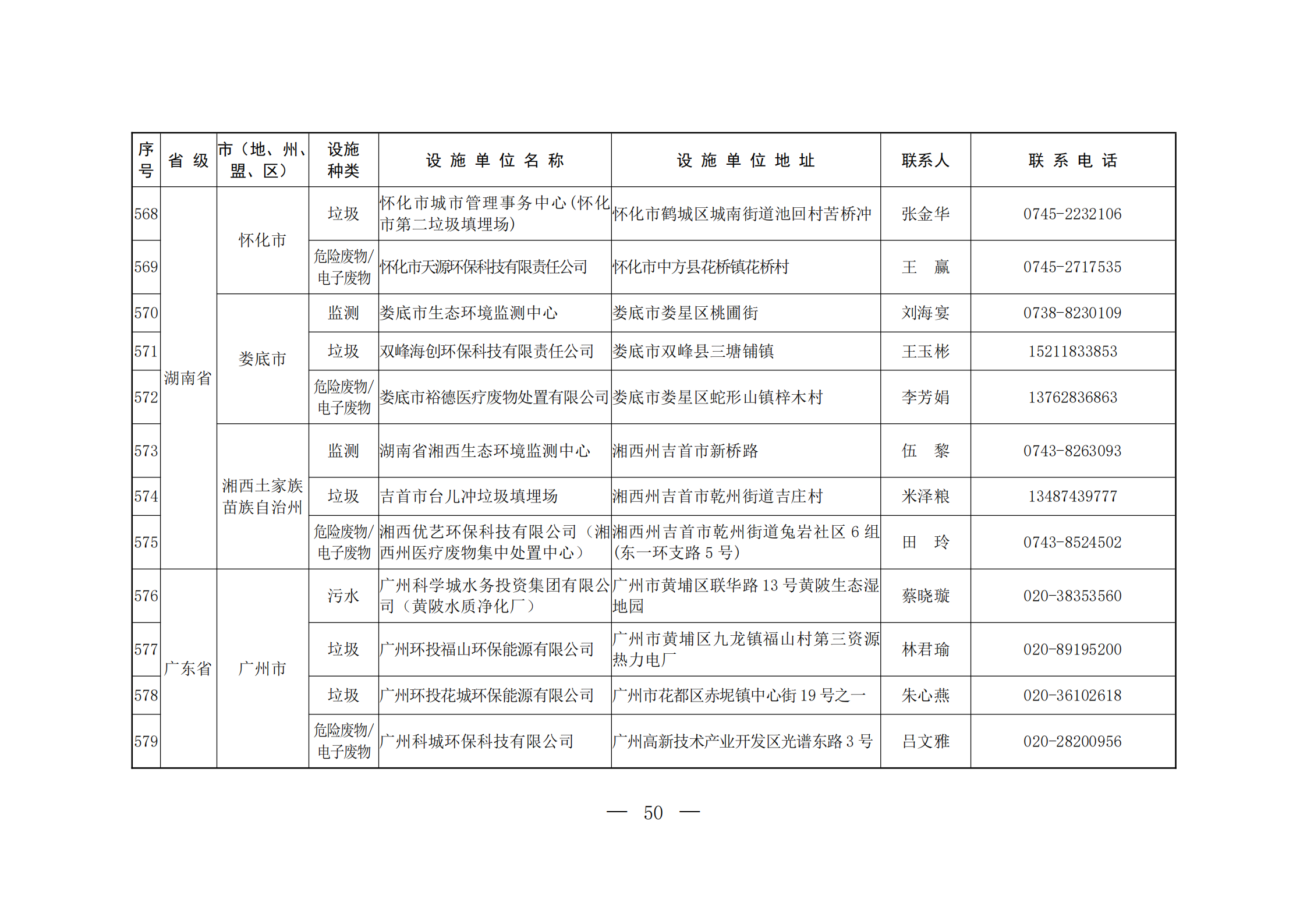 生態(tài)環(huán)境部、住房和城鄉(xiāng)建設(shè)部近日聯(lián)合公布第四批全國環(huán)保設(shè)施和城市污水垃圾處理設(shè)施向公眾開放單位名單。名單共包括全國31個(gè)省(區(qū)、市)的876家設(shè)施單位。其中,共有175家環(huán)境監(jiān)測設(shè)施、289家城市污水處理設(shè)施、203家垃圾處理設(shè)施及209家危險(xiǎn)廢物或電子廢棄物處理設(shè)施單位。