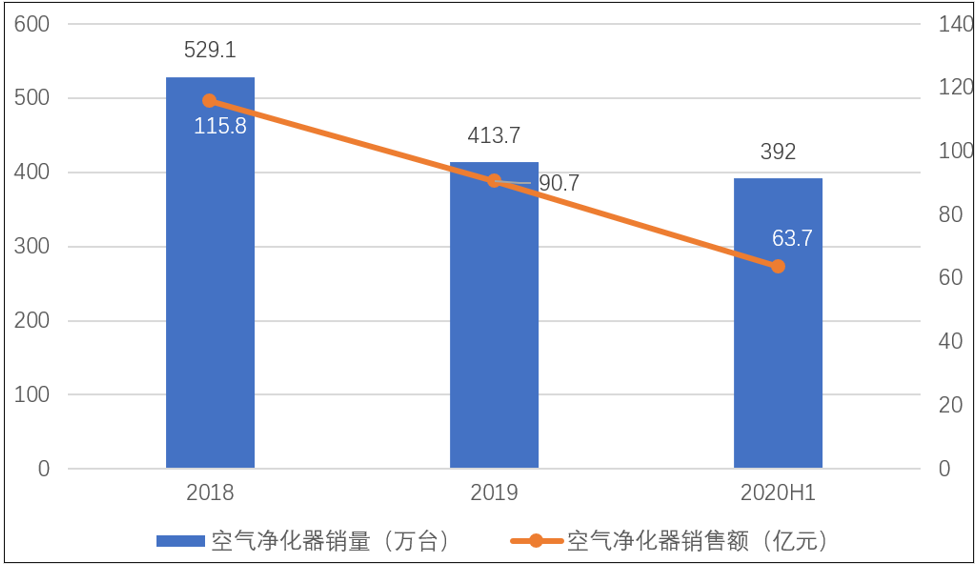 圖3 2018-2020年空氣凈化器銷量和銷售額