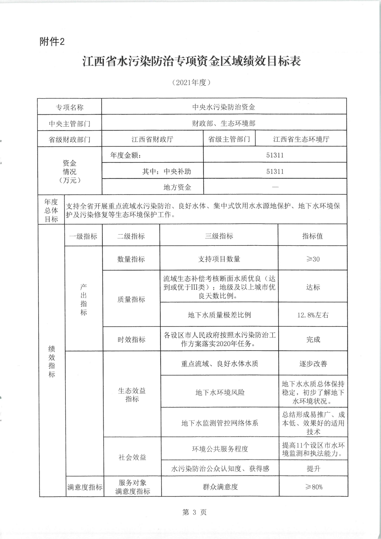 2、江西省中央水污染防治資金區(qū)域績效目標申報表