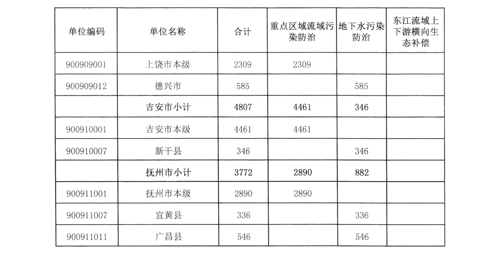 1、江西省2021年中央水污染防治資金分配表