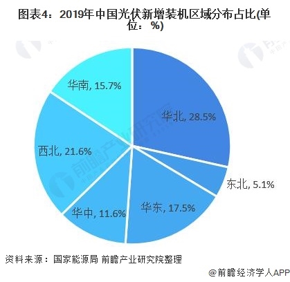 從新增裝機(jī)布局看,我國光伏發(fā)電由西向東的發(fā)展步伐穩(wěn)步推進(jìn)。2019年,華北地區(qū)新增裝機(jī)最多,達(dá)858萬千瓦,占全國的28.5%;其次是西北地區(qū),新增裝機(jī)649萬千瓦,占全國的21.6%。