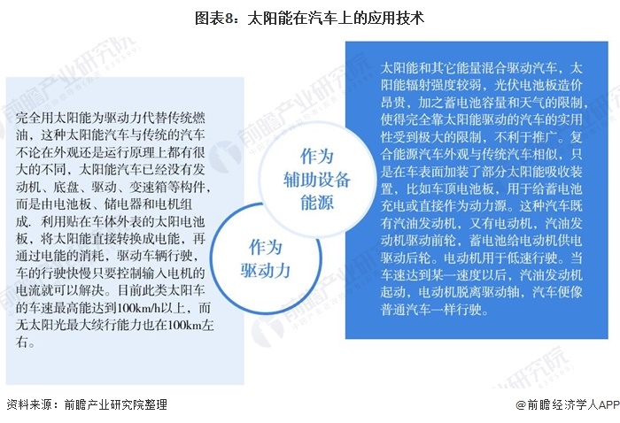 混合能源驅(qū)動(dòng)汽車指的是在傳統(tǒng)汽車表面加裝太陽能板,用于給蓄電池充電或直接作為動(dòng)力源,這種汽車既有汽油發(fā)動(dòng)機(jī),又有電動(dòng)機(jī),汽油發(fā)動(dòng)機(jī)驅(qū)動(dòng)前輪,蓄電池給電動(dòng)機(jī)供電驅(qū)動(dòng)后輪。太陽能被稱作是最符合中國國情的新能源汽車解決方案,到目前為止,太陽能在汽車上的應(yīng)用技術(shù)主要有兩個(gè)方面: