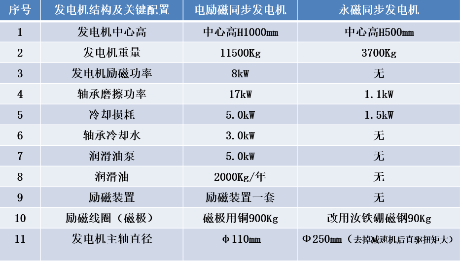 據(jù)悉,此次改造11臺套發(fā)電機組,共計投資900萬元。由于減少齒輪箱、減少勵磁裝置、減少油泵等,永磁發(fā)電機與電勵磁發(fā)電機比較節(jié)省改造費用400萬元,年減少運行費用100余萬,大約3年即可收回投資。項目改造還減少了廢機油處理,實現(xiàn)環(huán)保、綠色、節(jié)能和安全可靠運行,符合國家產(chǎn)業(yè)政策。