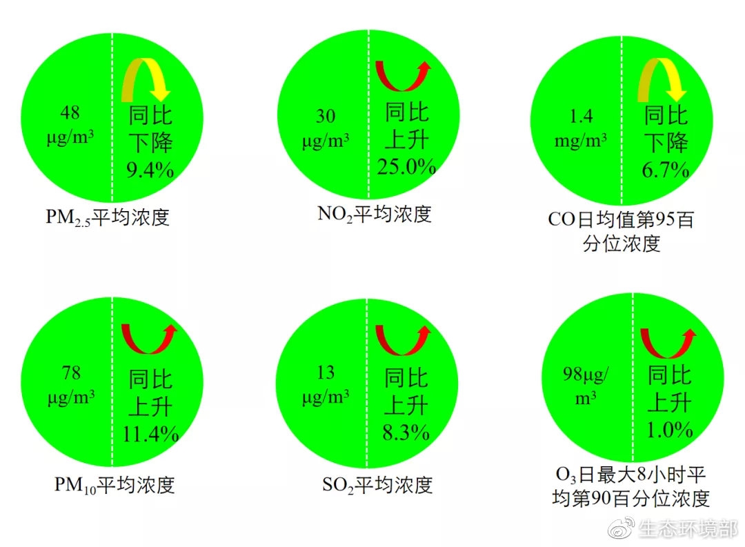 1-2月,全國(guó)339個(gè)地級(jí)及以上城市平均優(yōu)良天數(shù)比例為80.4%,同比上升2.2個(gè)百分點(diǎn);PM2.5平均濃度為48微克/立方米,同比下降9.4%;PM10平均濃度為78微克/立方米,同比上升11.4%;O3平均濃度為98 微克/立方米,同比上升1.0%;SO2平均濃度為13微克/立方米,同比上升8.3%;NO2平均濃度為30微克/立方米,同比上升25.0%;CO平均濃度為1.4毫克/立方米,同比下降6.7%。