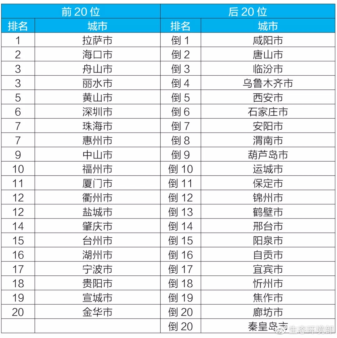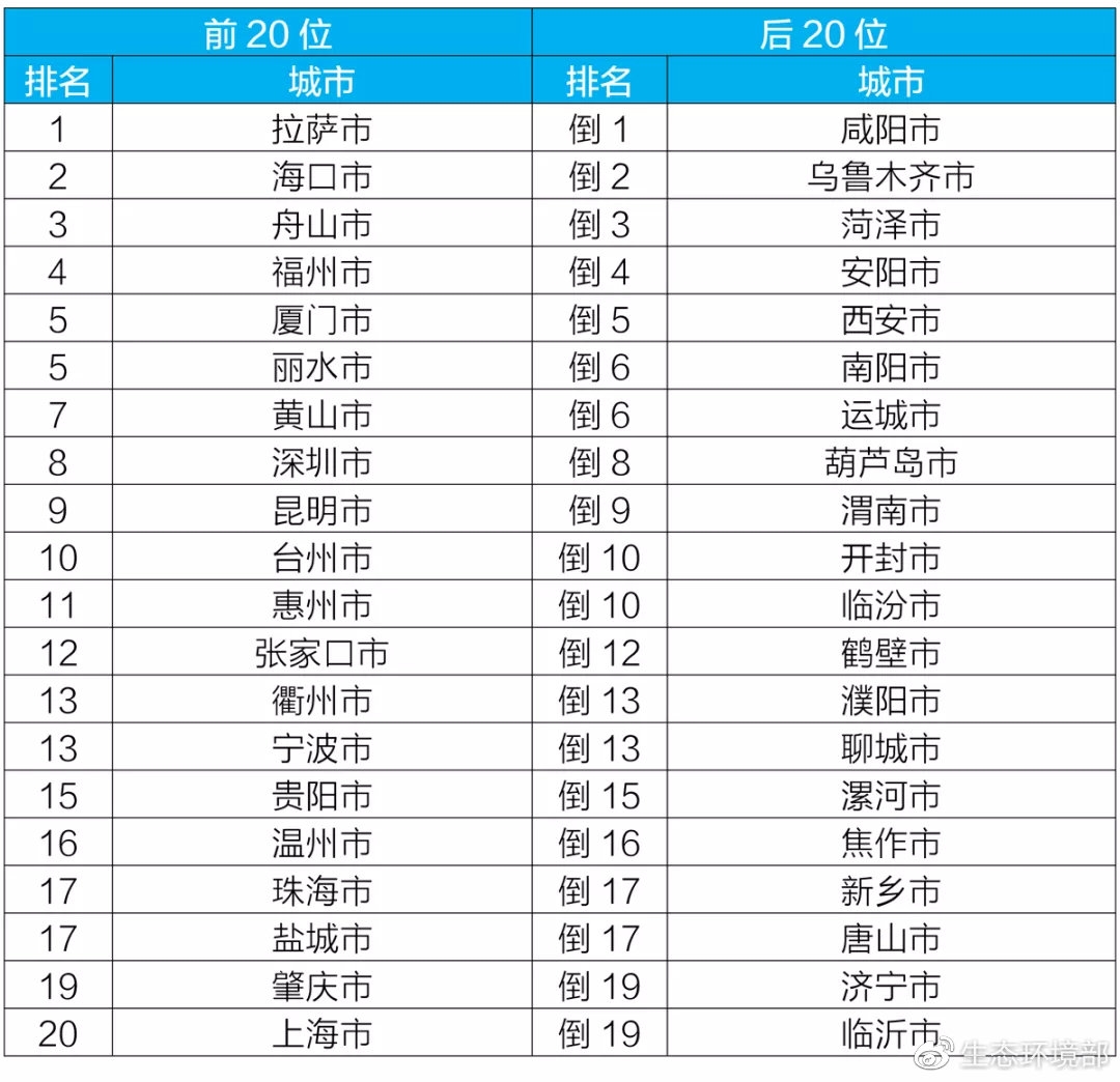 地級(jí)及以上城市國(guó)家地表水考核斷面排名