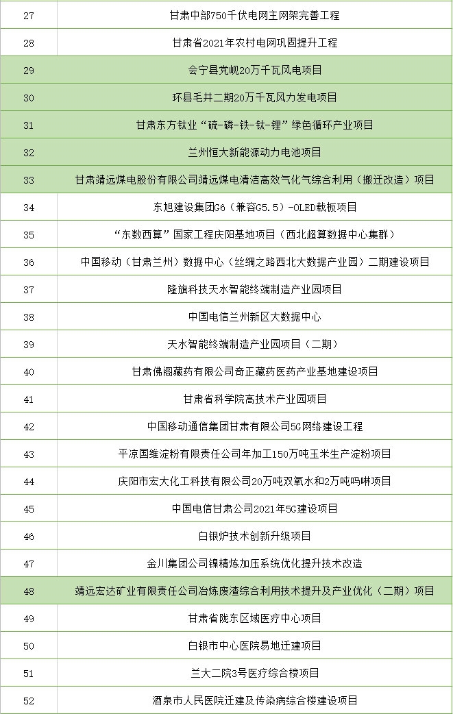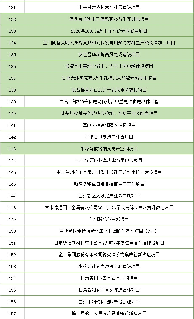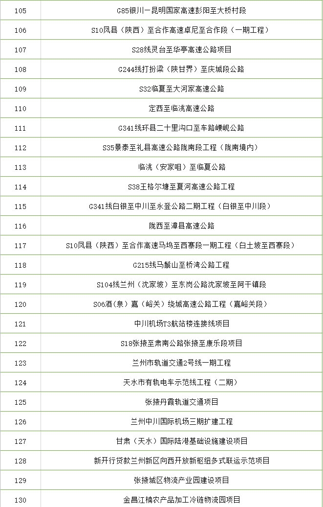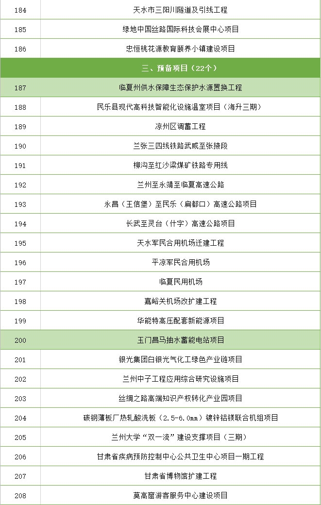《2021年甘肅省省列重大項目名單》下發(fā),共208個項目,其中計劃新開工項目70個,續(xù)建項目116個,預(yù)備項目22個。