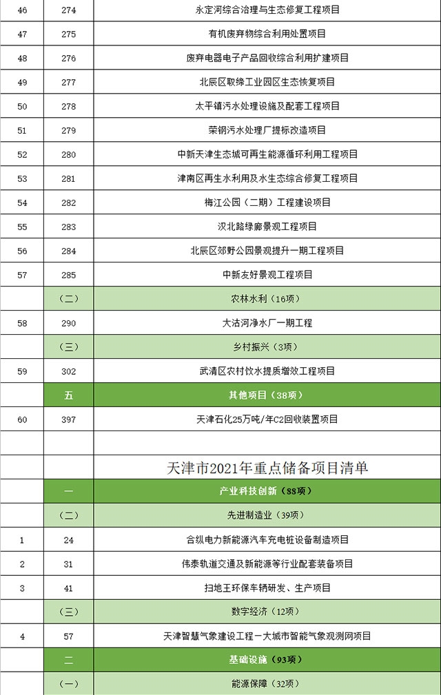 2021年3月22日,天津市發(fā)改委公布《2021年重點(diǎn)建設(shè)、重點(diǎn)儲(chǔ)備項(xiàng)目》。