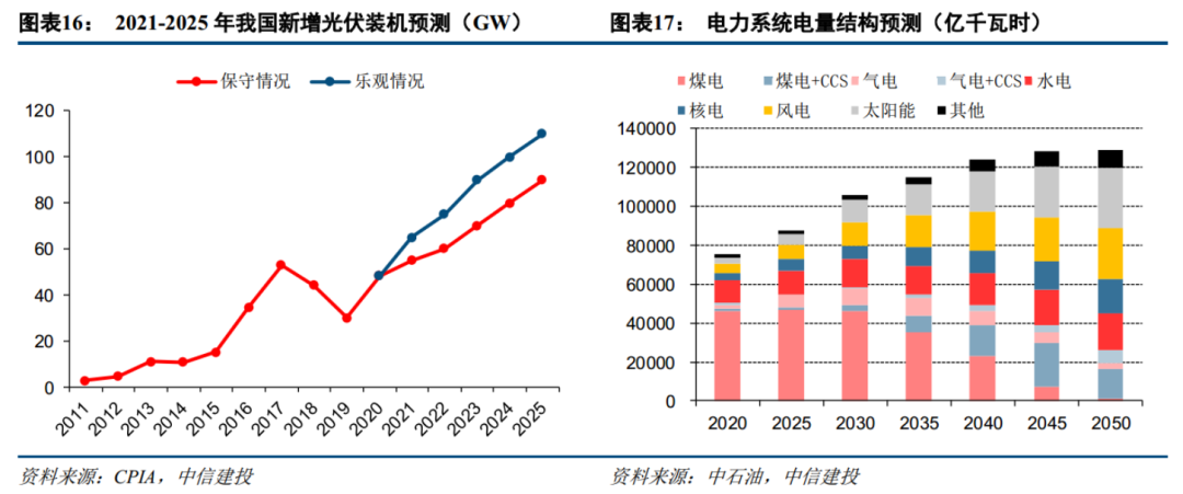 光電和風(fēng)電是清潔能源首選,未來仍大有可為,上游相關(guān)材料迎長期發(fā)展機(jī)會;“降能耗”為另一方向,相關(guān)細(xì)分新材料機(jī)會或?qū)⒂枨笸⒃鲩L。